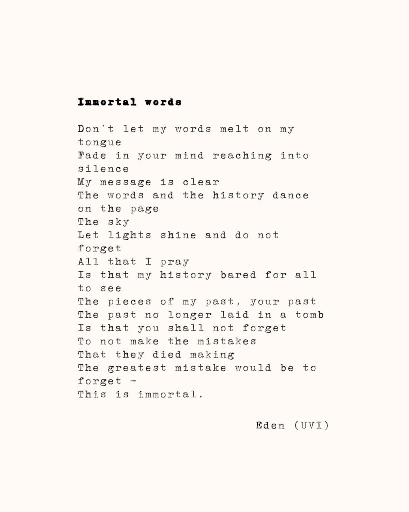 Last week, in celebration of National Poetry Day 2025, our Poet Laureate, Eden (UVI), unveiled a poignant and beautifully written poem titled Immortal Words. The piece explores the enduring power of language and its ability to transcend time, evoke memory and preserve meaning across generations.